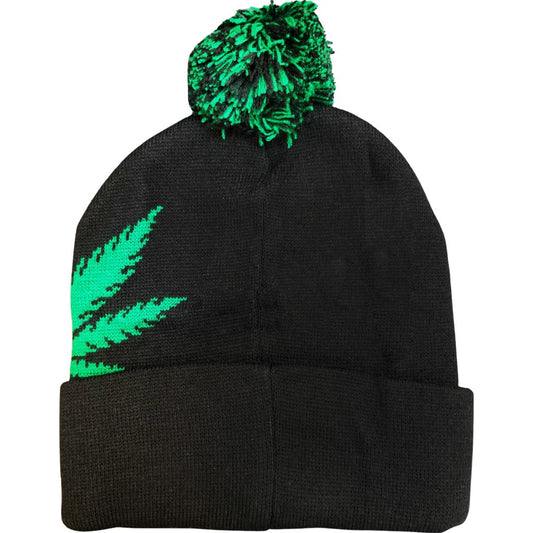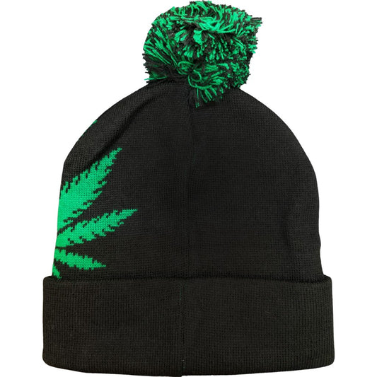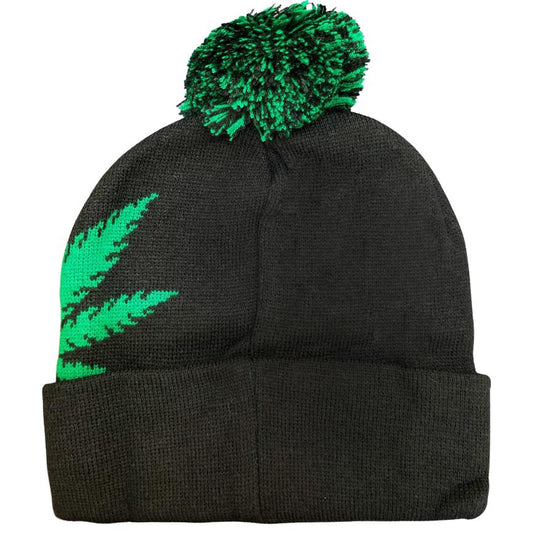 블랙 Pom Cuffed 니트 Marijuana Leaf HIGHLIFE 프린트 비니 모자