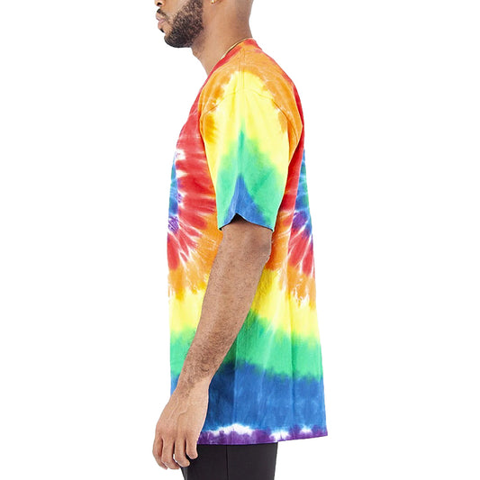 남성 MAX 헤비급 오버사이즈 타이다이 티셔츠 레인보우