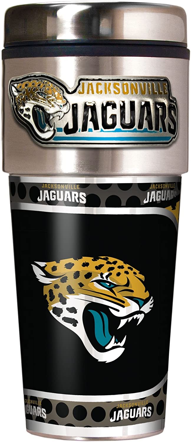 잭슨빌 재규어 메탈릭 여행용 텀블러 스테인리스 스틸 16온스