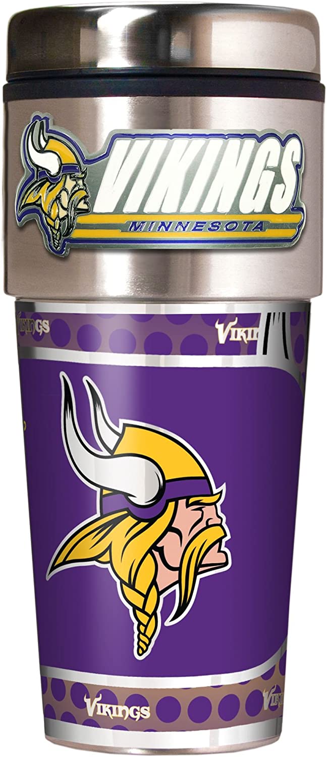 미네소타 바이킹스 메탈릭 여행용 텀블러 스테인리스 스틸 16온스
