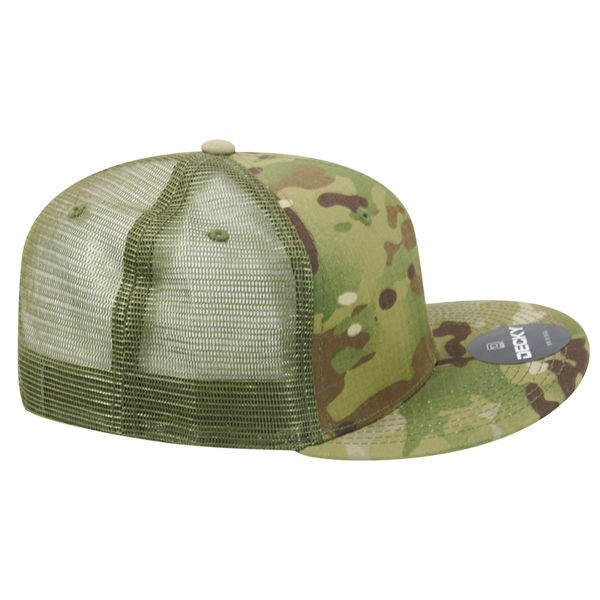 하이 크라운 멀티 카모 트러커 스냅백 캡, 카모/올리브 조절식 모자