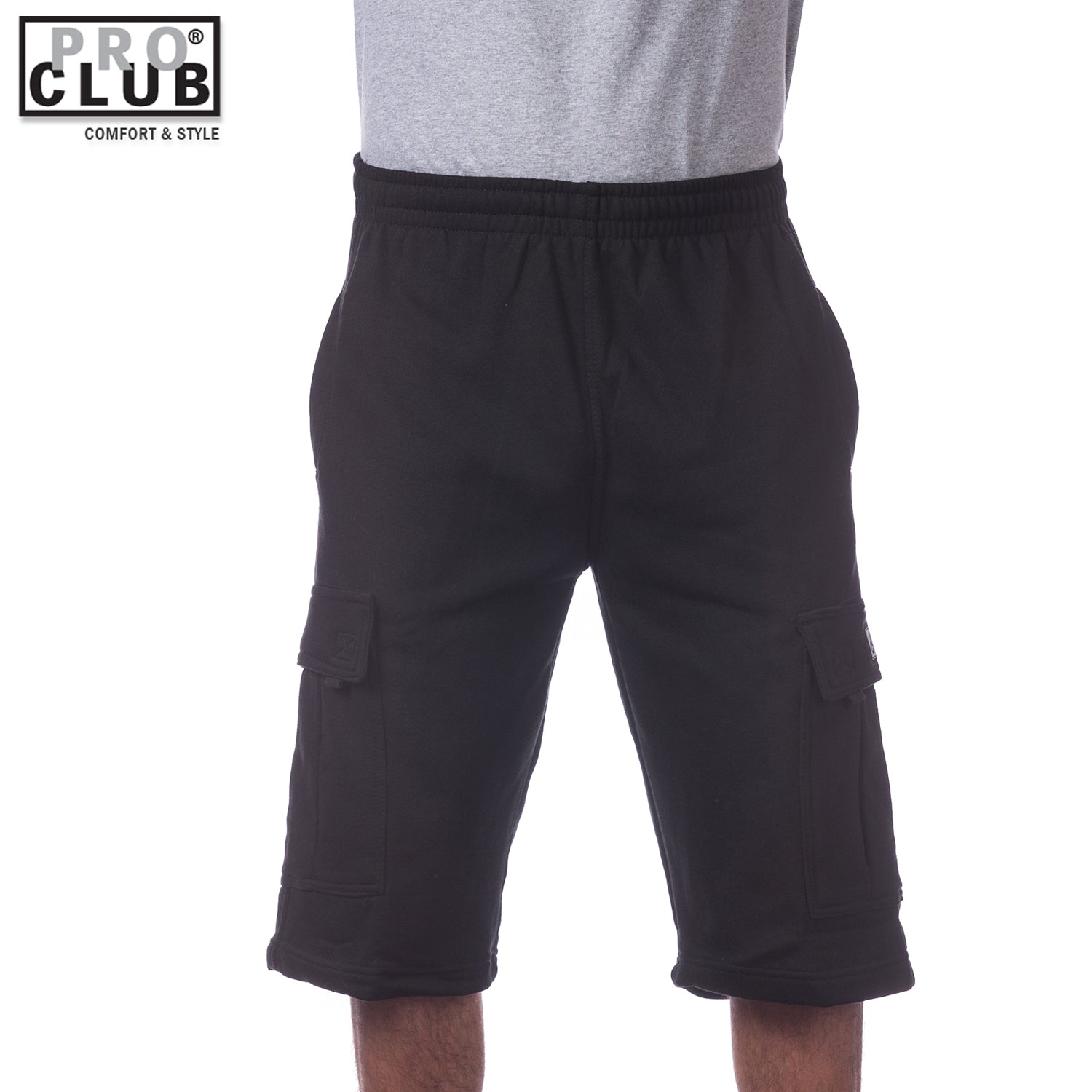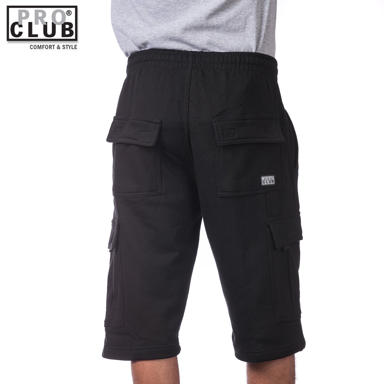 Pro Club Men's Fleece Cargo Shorts Pants Black