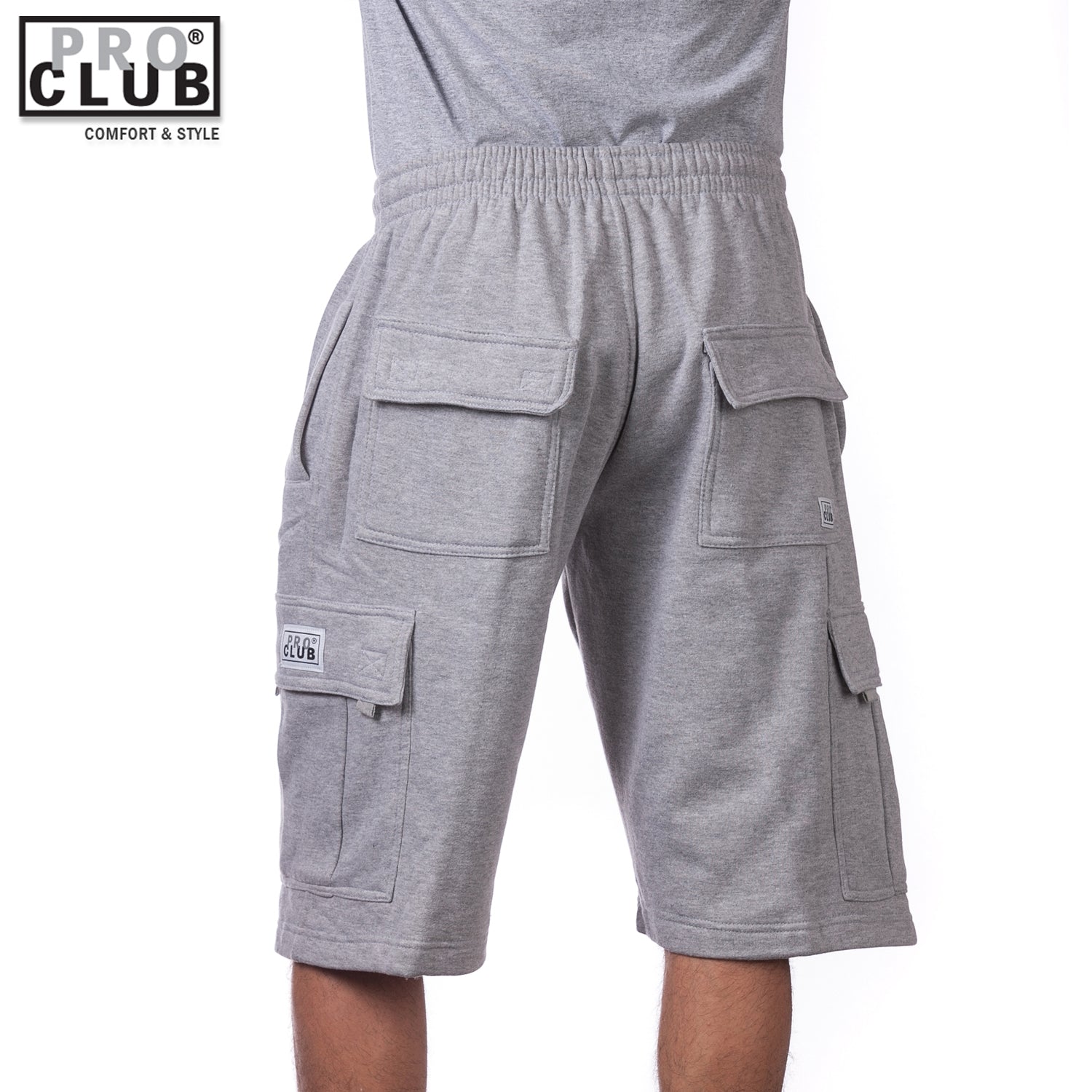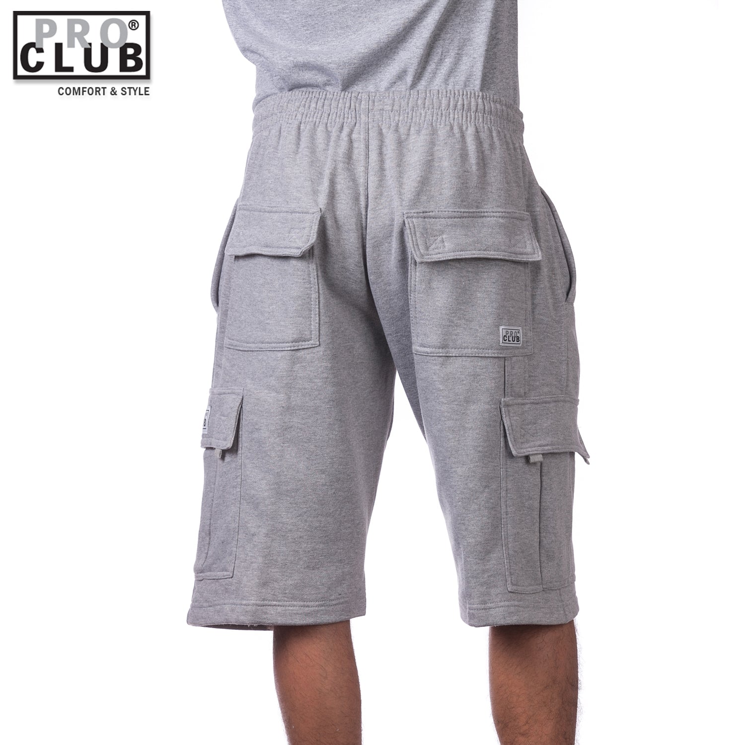 Pro Club Men's Fleece Cargo Shorts Pants Heather Gray