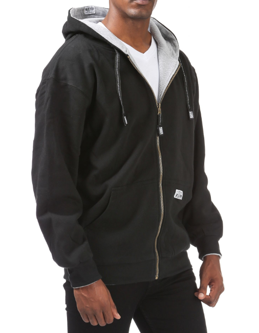Pro Club Men's Reversible Full Zipper Hooded Jacket crafted with a heavyweight, durable fleece and contrasting reversible thermal lining. The hoodies are warm with a relaxed fit for superior comfort. Double-needle cover, seamed neck, armholes, and waistband means legendary Pro Club durability and longevity. Reversible makes it versatile, and two pockets on each side makes it functional.
